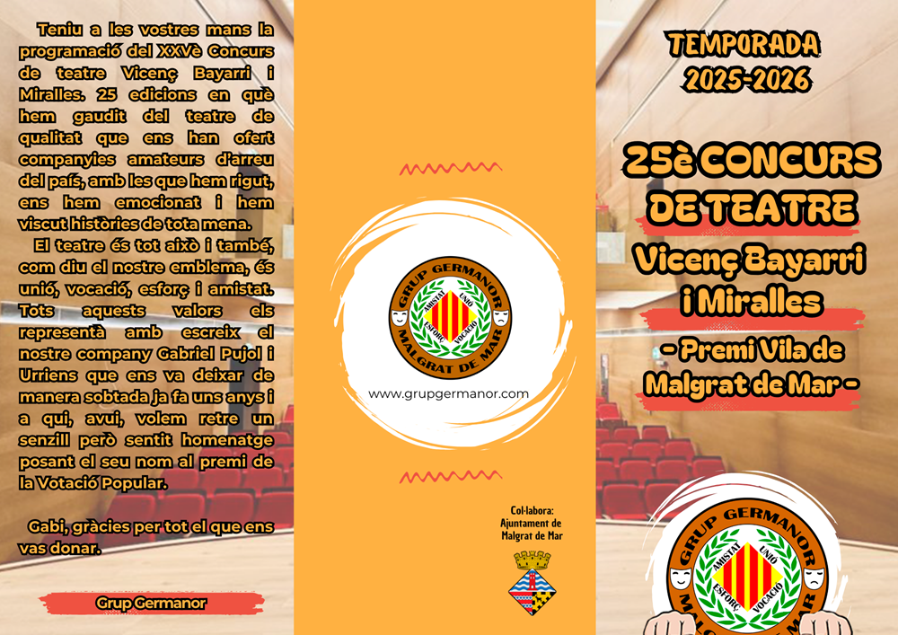 Anys del 2025 a l’actualitat 1a Mostra de teatre del Maresme(2025) Obres participants 25è Concurs(2025-2026) Obres participants
